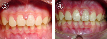 3.四ヶ月後、後戻りを考慮して2番目の歯をしっかりと前に出して治療は終了です。